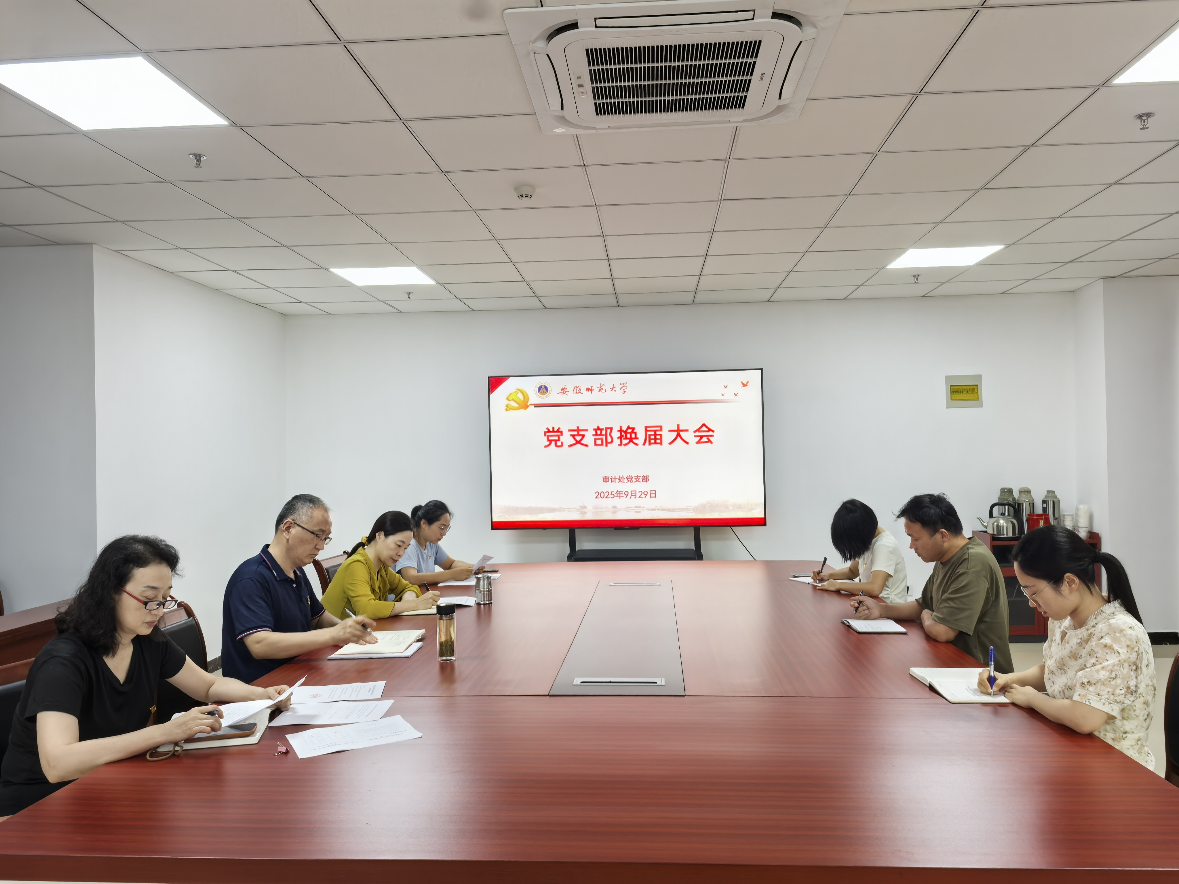 9月29日下午,审计处党支部换届大会在文典楼A528会议室举行,支部全体正式党员参加大会,机关党委委员、人事处副处长王标到会指导,会议由审计处处长喻娜主持召开。